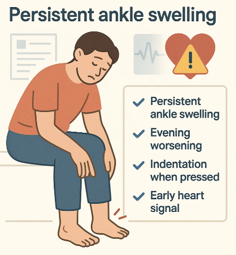 ✔️ 반복되는 발목 부종은 단순 피로가 아닌 심부전 초기 징후일 수 있음 ✔️ 심부전은 혈액순환 장애 → 조직 부종 → 호흡곤란·피로로 이어짐 ✔️ 함몰성 부종, 야간 숨가쁨, 피로감은 정밀 검사의 필요 신호 ✔️ 심부전은 조기 발견 시 삶의 질 개선 및 생존율 향상 가능 ✔️ 지금 당신의 발목이 붓고 있다면, 심장이 보내는 구조 신호일 수 있습니다.